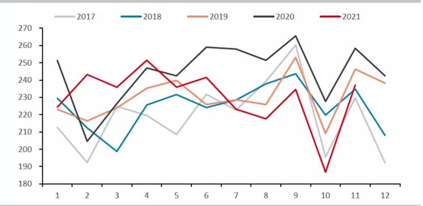 中國(guó)生鐵日均產(chǎn)量情況走勢(shì)圖(單位:萬噸)